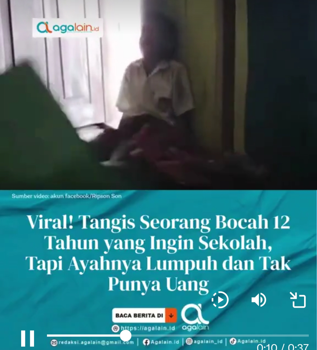 TOJO UNA-UNA, SULTENG – Di negeri yang katanya gemah ripah loh jinawi ini, ternyata masih ada bocah kelas enam SD yang harus menangis dulu agar bisa sekolah. Namanya Galang Rawadang, usianya 12 tahun, cita-citanya sederhana: mau jadi orang pintar, bukan jadi konten viral, apalagi bintang iklan sedih. Tapi apa daya, untuk sekolah saja, Galang harus berjibaku dengan kemiskinan dan ketidakpedulian.