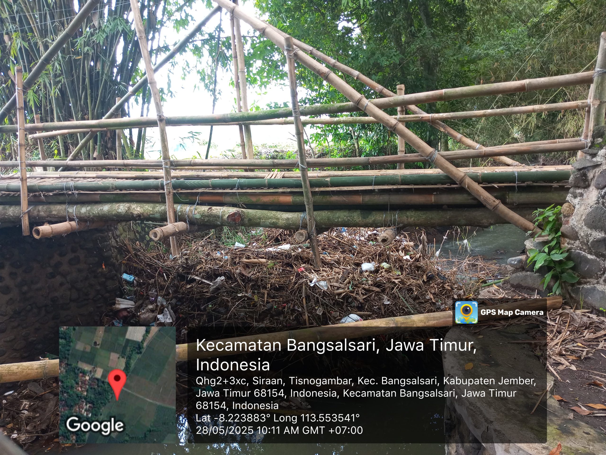 BANGSALSARI, JEMBER – Kalau biasanya jembatan menghubungkan dua hati, yang ini malah putus gara-gara air mata langit alias hujan deres tak ketulungan. Dusun Siraan, Desa Tisnogambar, tiba-tiba jadi halaman depan novel “Penderitaan yang Hakiki”, ketika satu-satunya jembatan penghubung antara Desa Tisnogambar dan Langkap rubuh tak kuat menanggung beban rindu dan truk muatan padi.