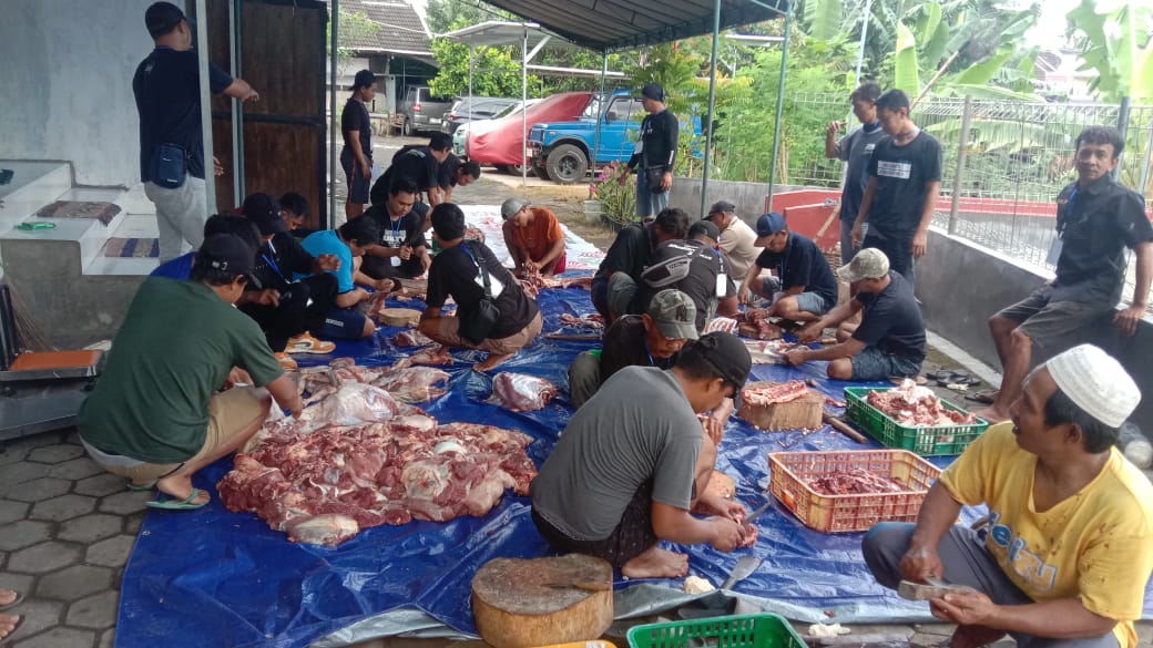Setelah semua hewan selesai disembelih (dengan sopan dan syar’i tentunya), daging langsung diproses oleh tim panitia yang udah kayak chef MasterChef dengan edisi spesial Idul Adha.