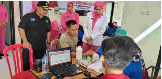 Kasi Dokkes, Penata Nur Prasetyo Hadi, menjelaskan acara ini dibantu oleh RS Bhayangkara Bondowoso dan PMI Banyuwangi. Jadi bisa dipastikan, yang nyuntik bukan mantan. Aman.