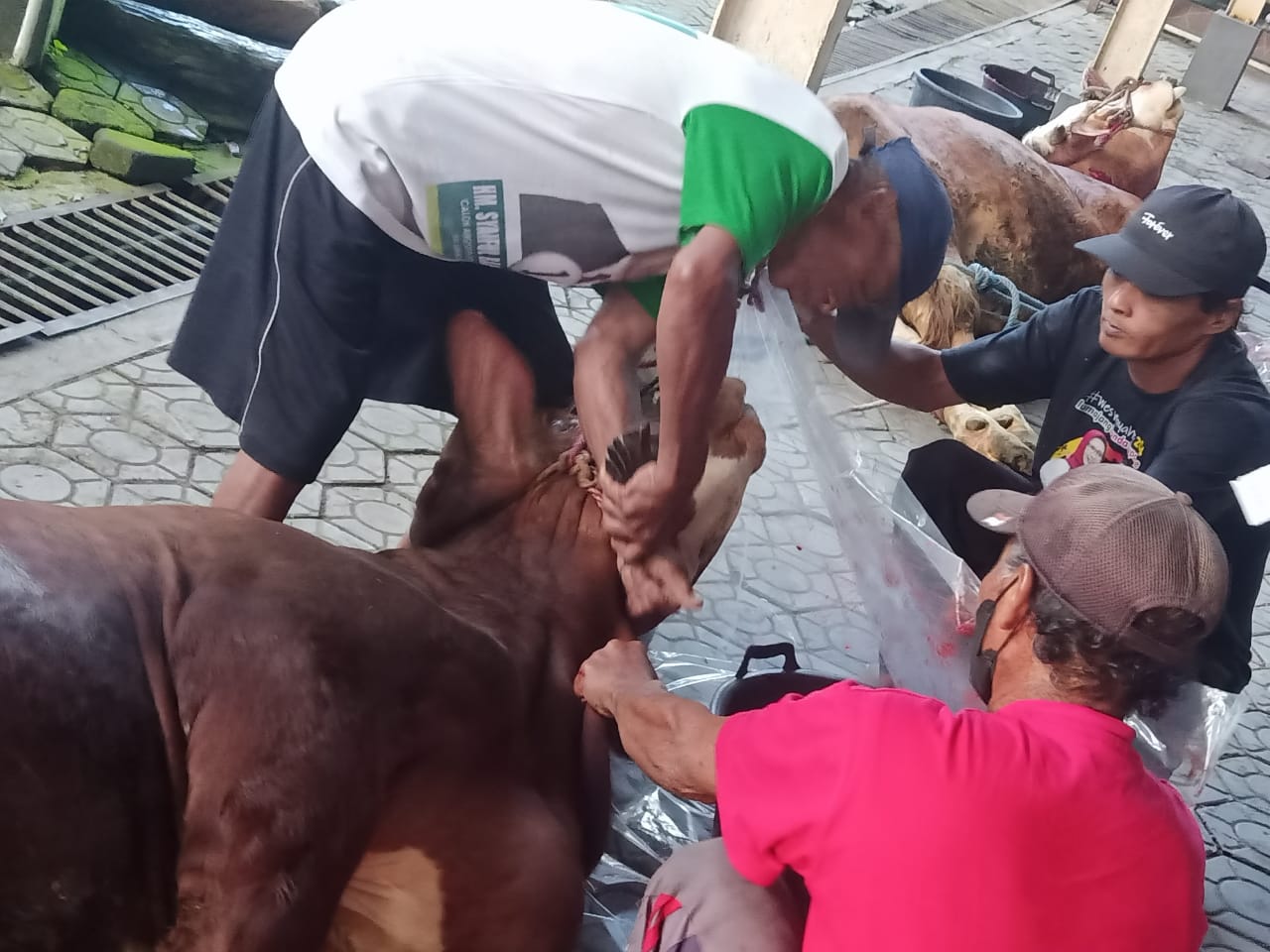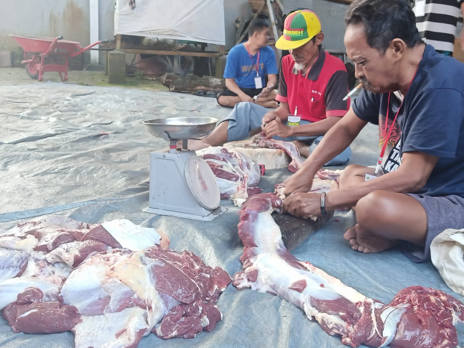 Dan kebersamaannya itu bukan cuma di status WhatsApp, tapi benar-benar dieksekusi nyata: total 26 ekor hewan – terdiri dari 8 sapi dan 18 kambing – disembelih secara sah, halal, dan syahdu. Jangan tanya berapa kilo dagingnya, karena timbangan sempat kejang-kejang ngitungin semua potongan.