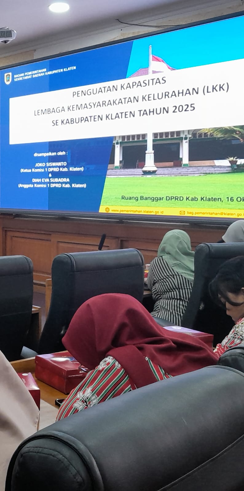 Bapak Joko Siswanto, Ketua Komisi I DPRD Klaten, dan Ibu Diah Eva Subadra, yang katanya siap menampung aspirasi lurah-lurah yang sudah lama kembung karena nahan uneg-uneg.