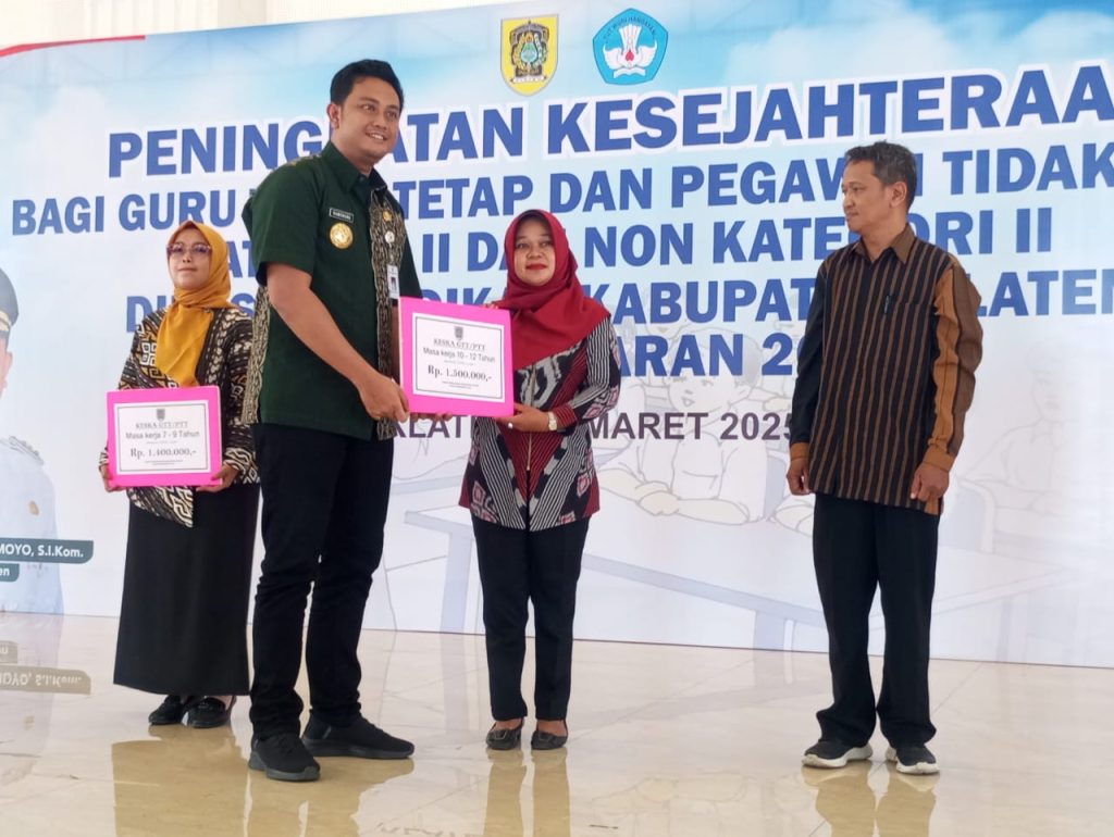 Klaten – Berita gembira datang jelang Lebaran! 1.500 Guru Tidak Tetap (GTT) di Klaten akhirnya menerima uang kesejahteraan untuk periode Januari-Februari. Seperti angin segar di tengah panasnya dompet yang makin kering, bantuan ini diserahkan langsung oleh Bupati Klaten, Hamenang Wajar Iswoyo, di Graha Bung Karno, Kamis pagi (27/3/25).