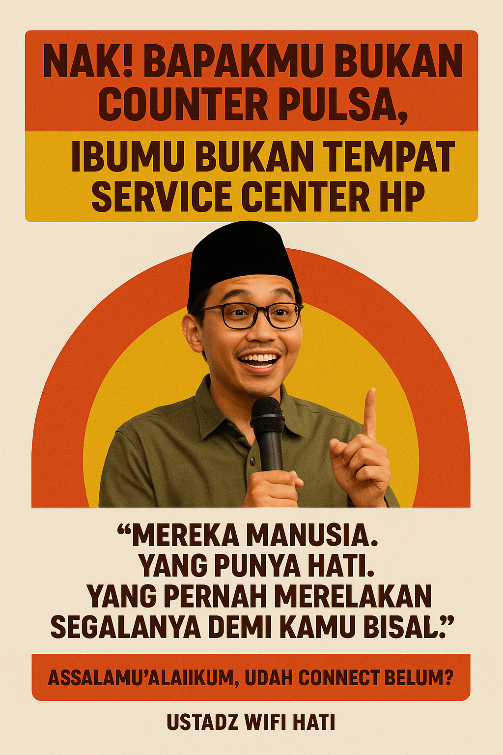 “Nak… Bapakmu bukan counter pulsa. Ibumu bukan service center HP. Mereka manusia. Yang punya hati. Yang pernah merelakan segalanya demi kamu bisa hidup.”
