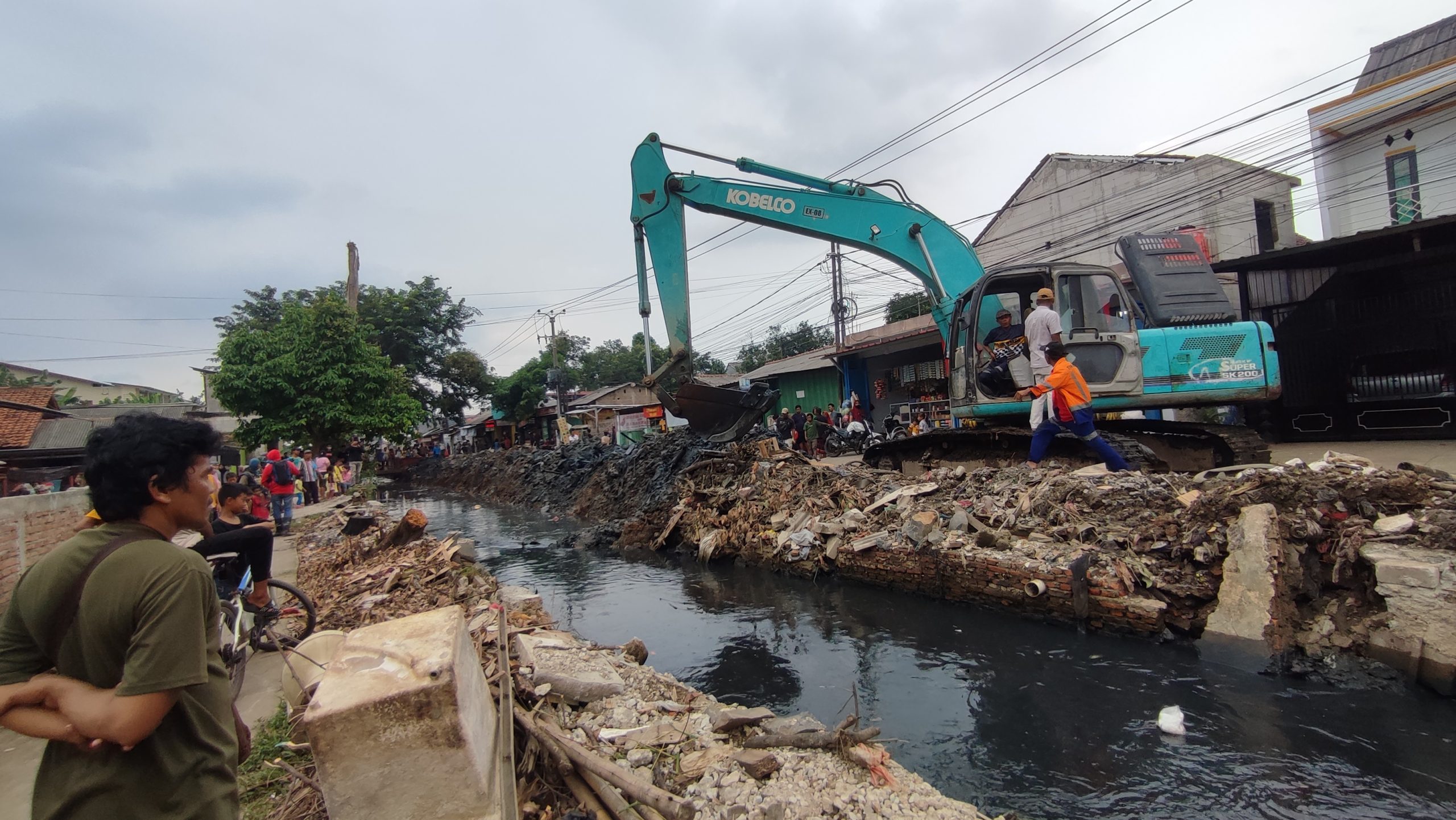 Sejumlah alat berat dikerahkan ke lokasi untuk mempercepat proses pengerukan. Endapan lumpur tebal, sampah rumah tangga, serta sisa-sisa material bangunan lama diangkat dari dasar kali guna memperlancar aliran air dan mengembalikan fungsi sungai sebagai jalur drainase utama wilayah tersebut.