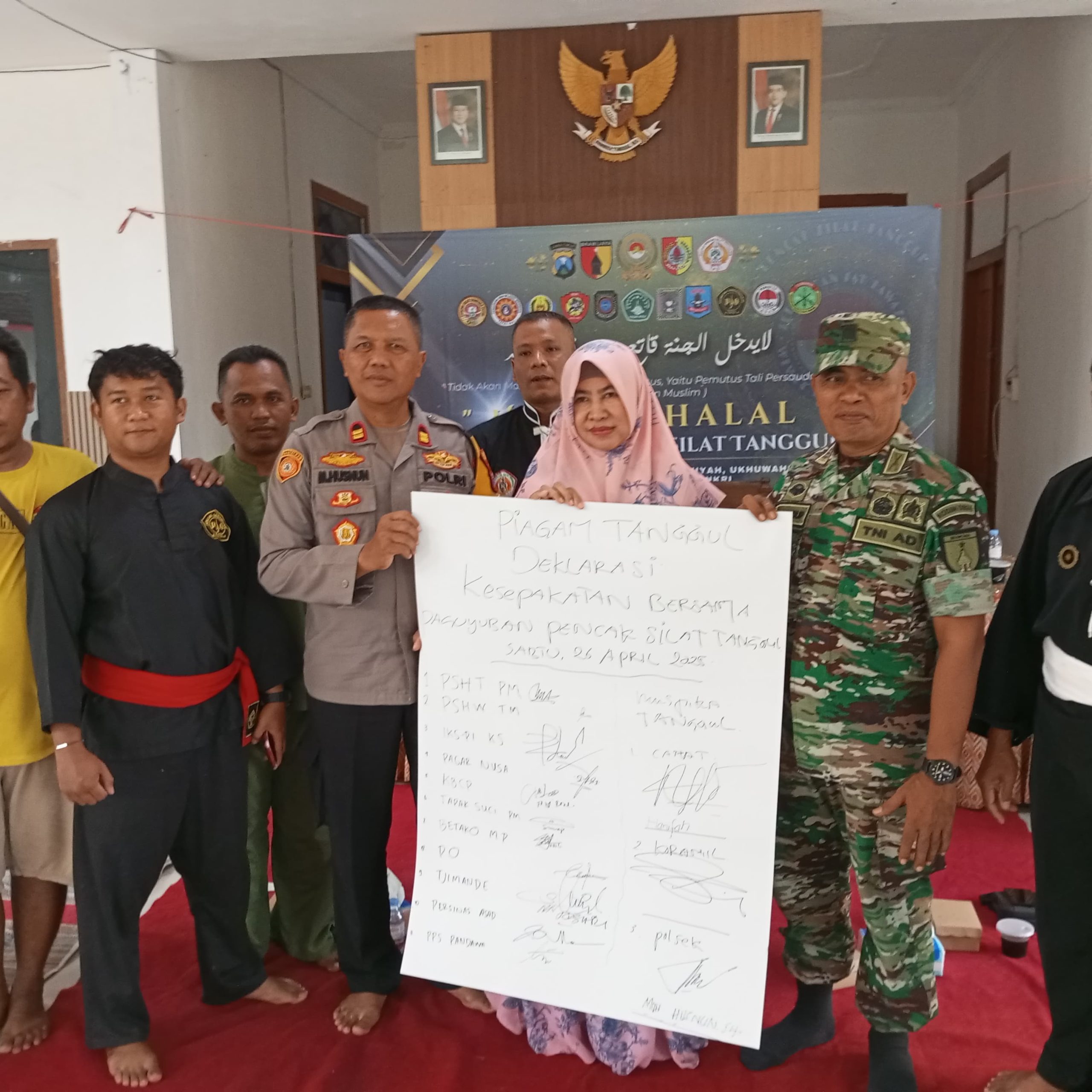 Acara ditutup dengan doa khusyuk dari Ustadz Salim, lalu dilanjut penandatanganan pakta integritas oleh Muspika dan para pimpinan perguruan silat.