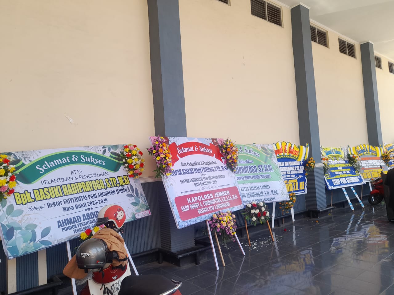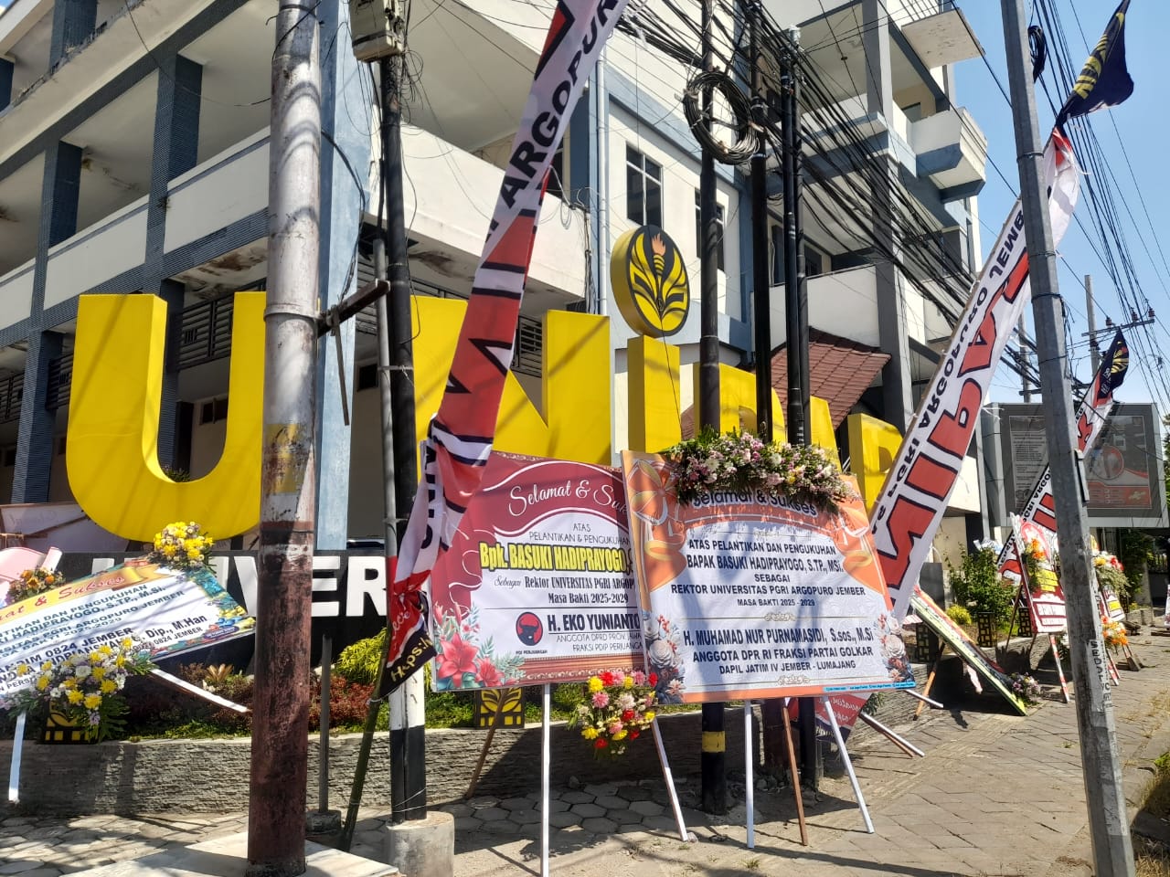 Puluhan Papan bunga ucapan berjejer di depan Kampus Unipar