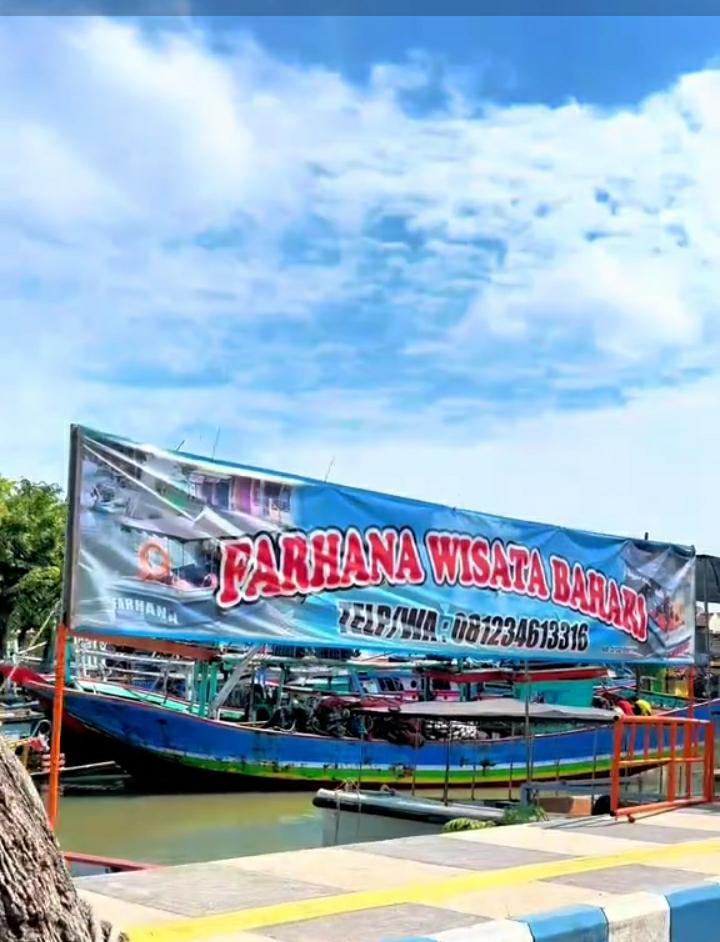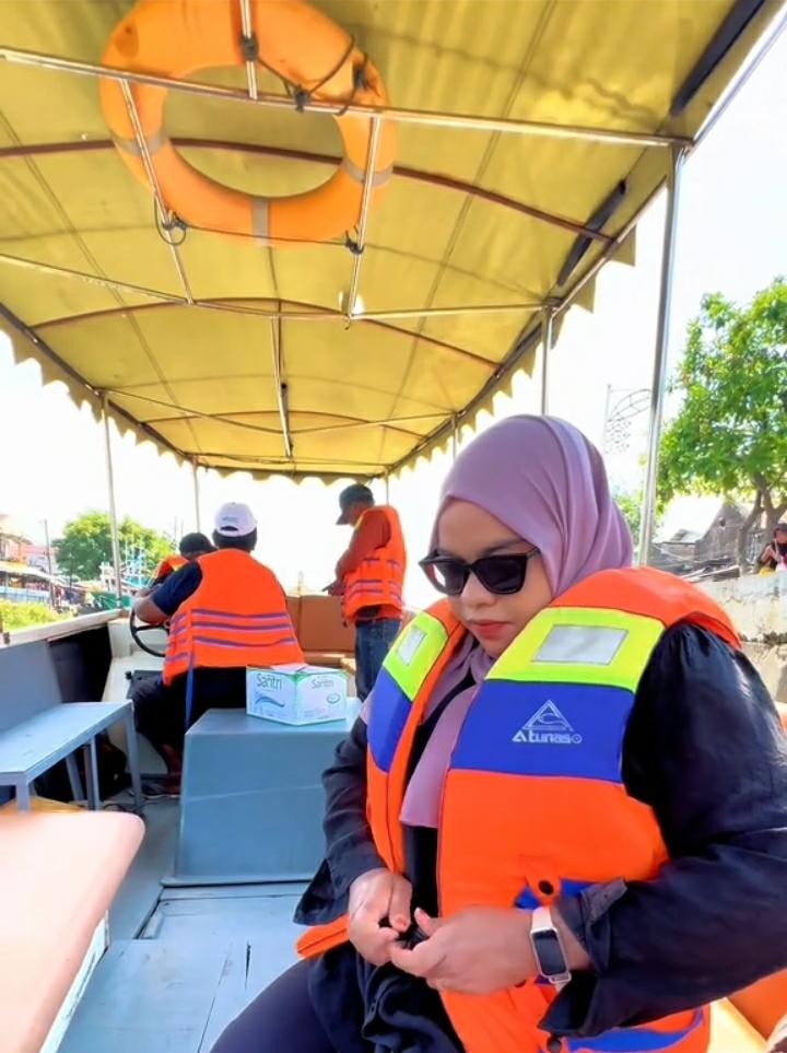 Farhana ngajak pengunjung untuk menjelajahi laut Pasuruan pakai kapal, lengkap dengan pelampung, pemandu, dan kadang bonus semilir angin yang bisa bikin rambutmu ala Syahrini.